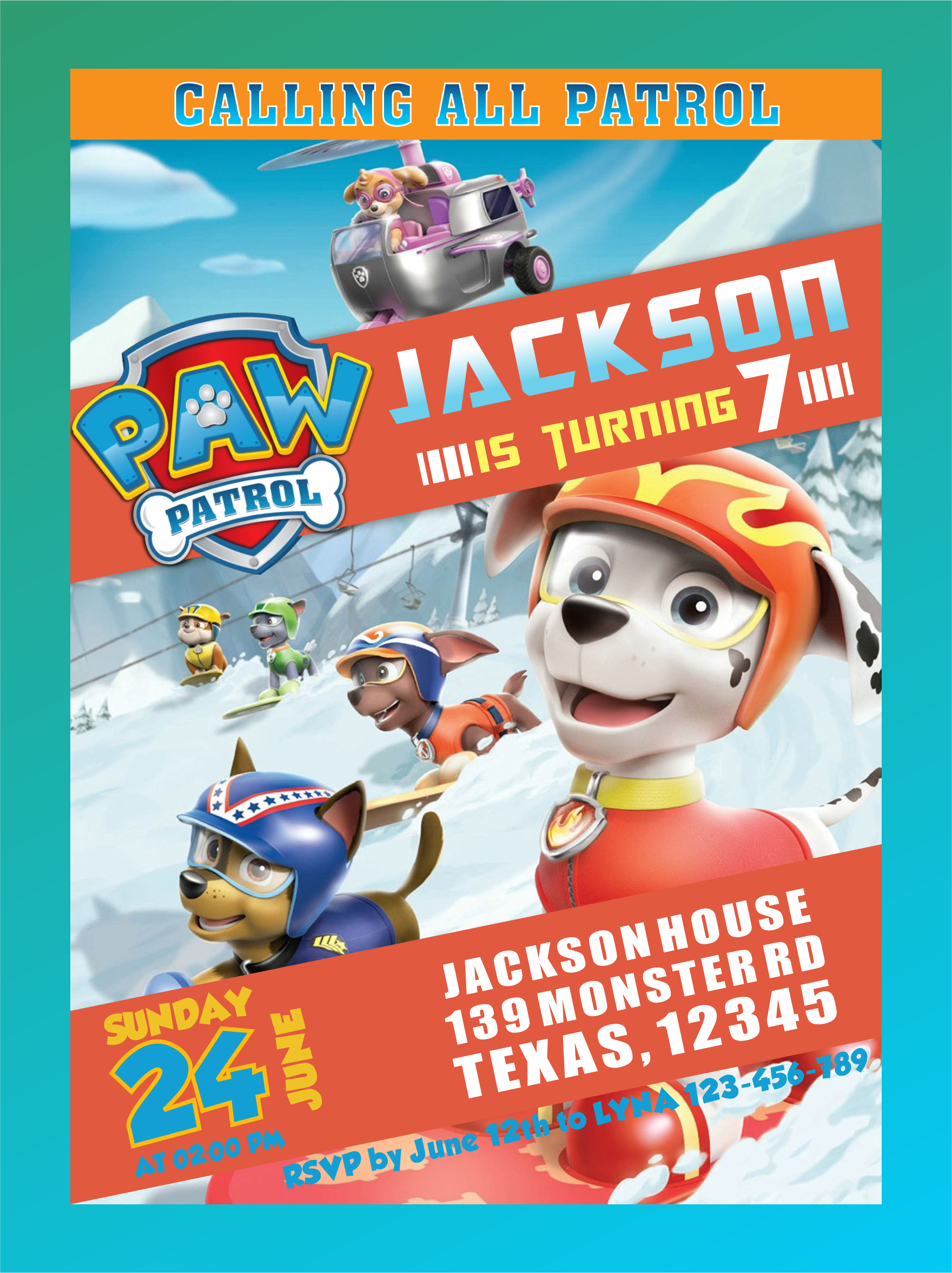 paw patrol birthday invitation, paw patrol party invitation, paw patrol digital invitation, paw patrol birthday, Personalized invitation