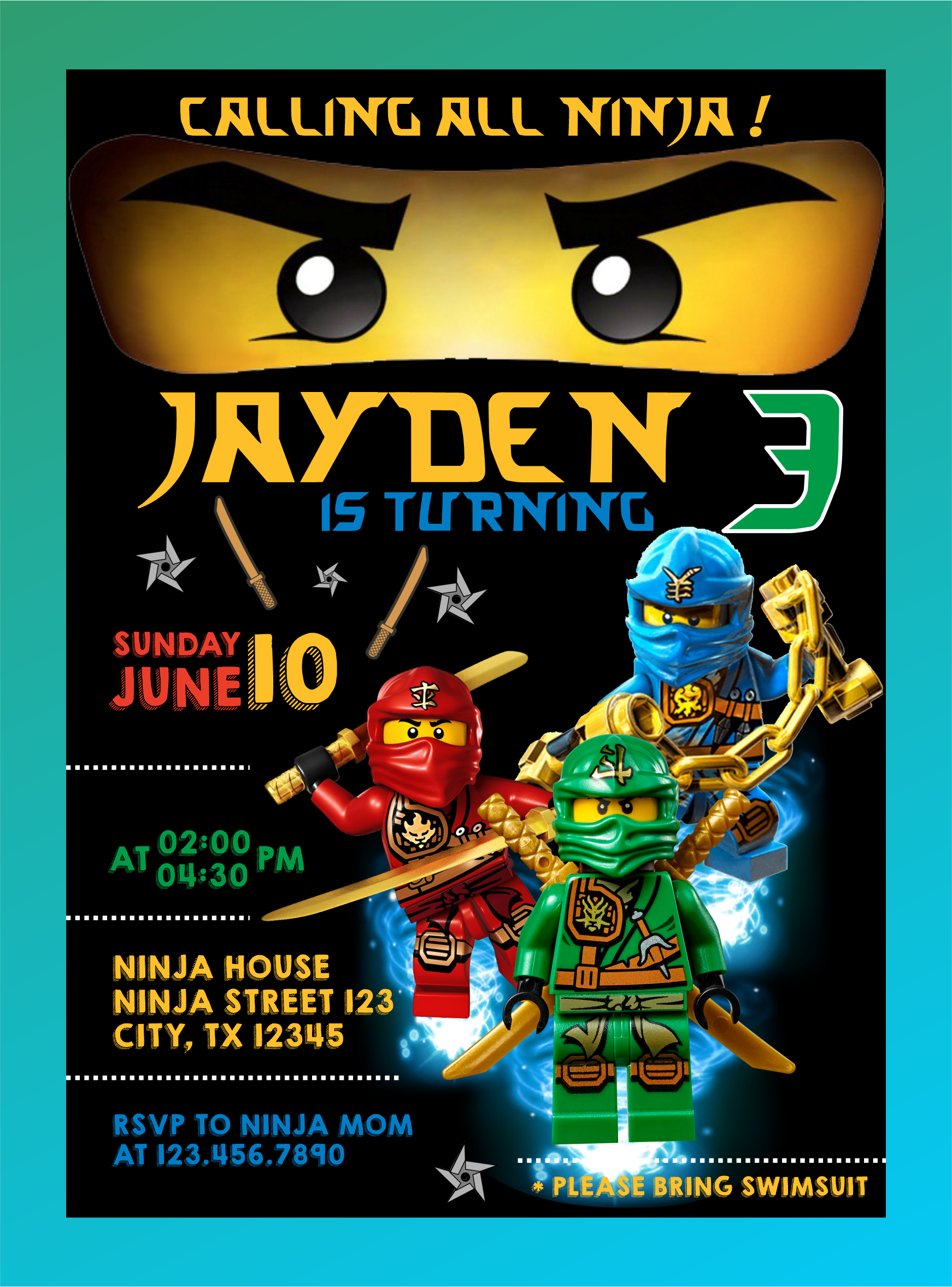 Ninjago birthday invitation, Ninjago party invitation, Ninjago digital invitation, Ninjago birthday, Personalized invitation
