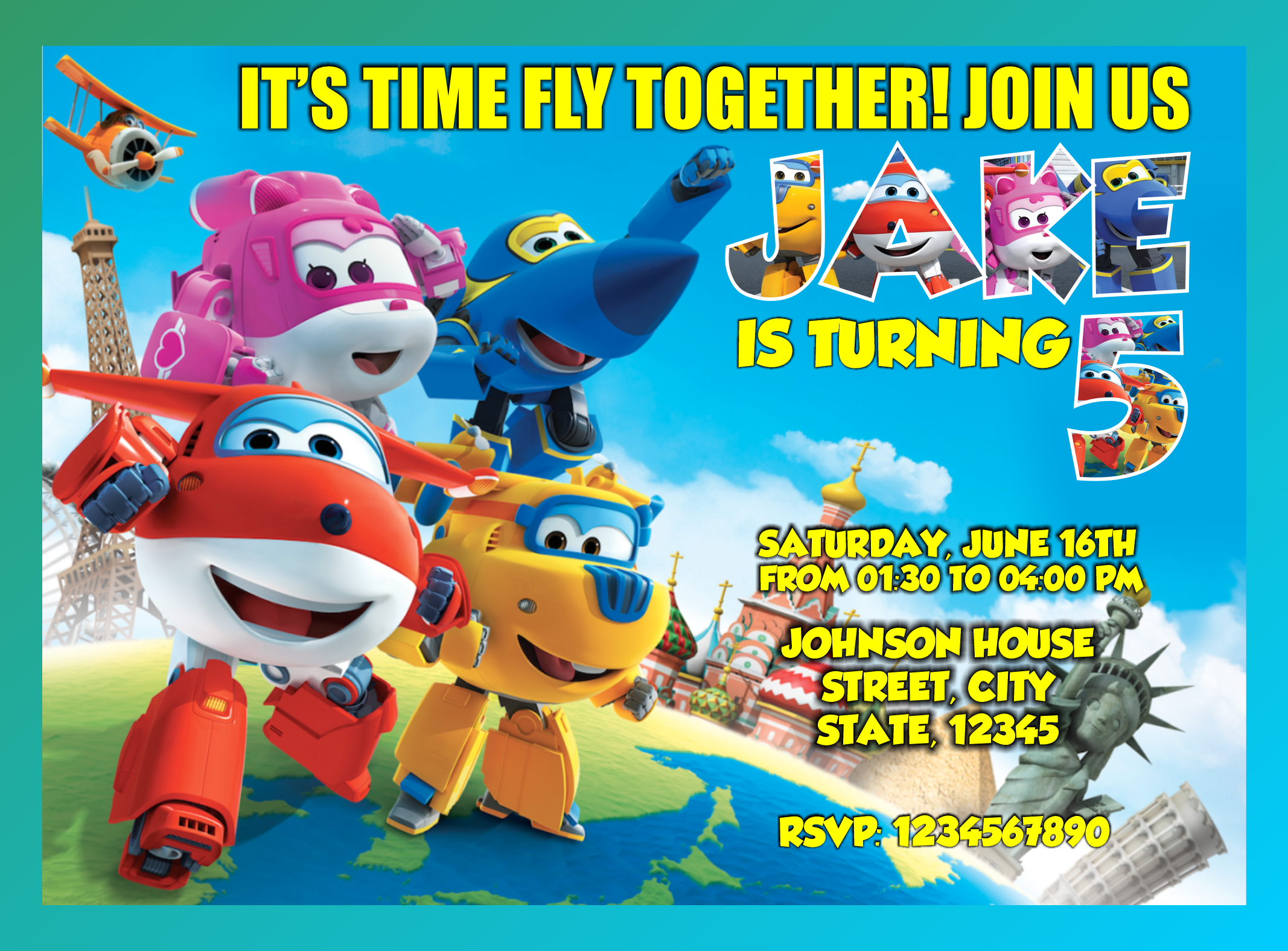 Super Wings birthday invitation, Super Wings party invitation, Super Wings digital invitation, Super Wings