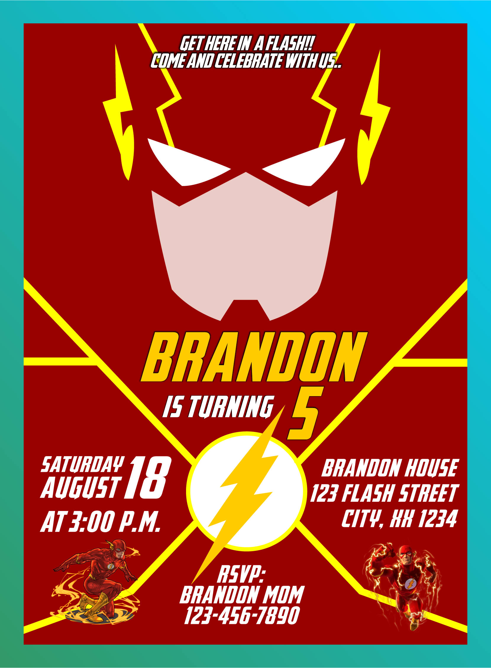 The Flash birthday invitation, The Flash party invitation, The Flash digital invitation, The Flash invitation