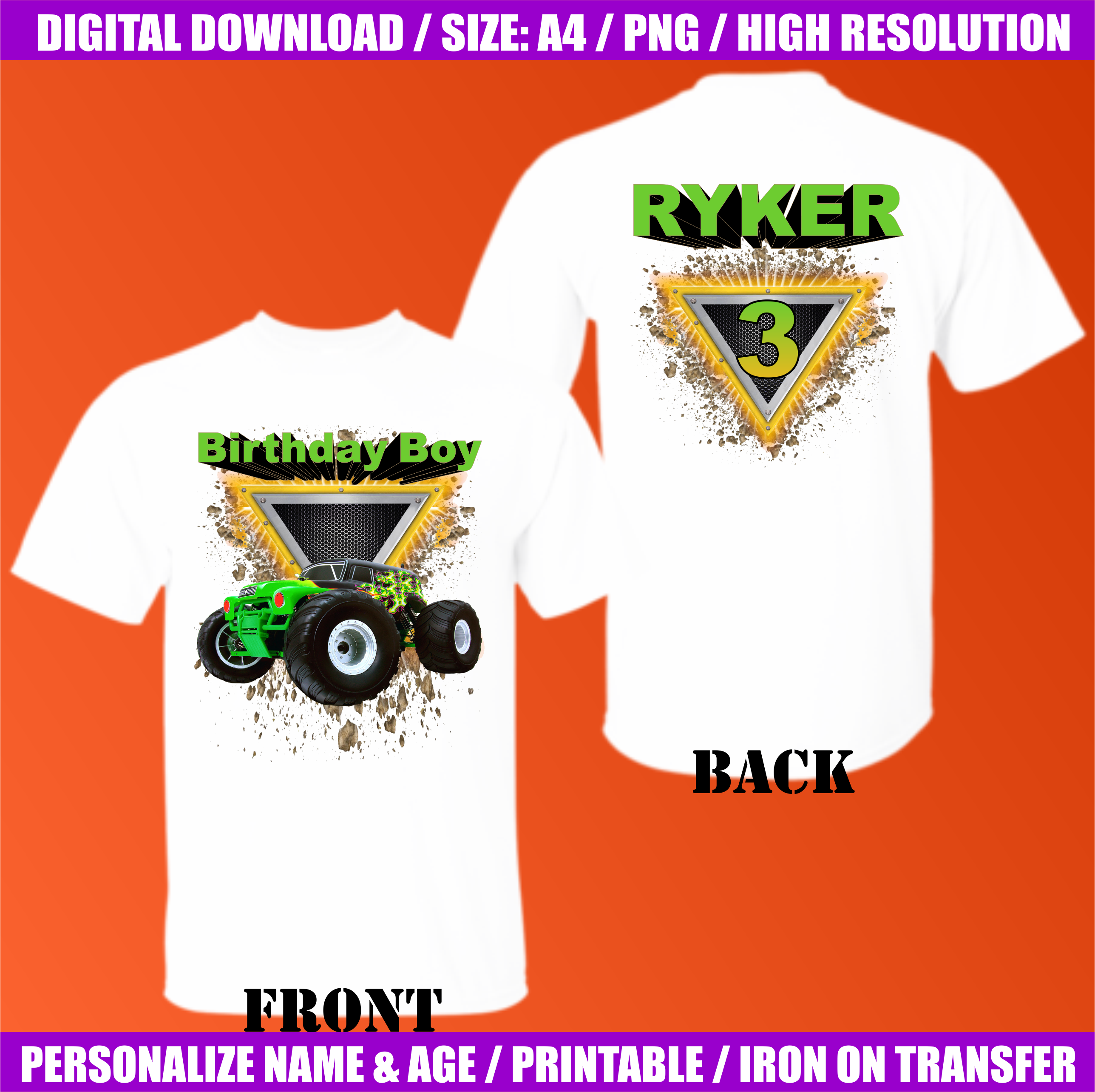Monster Truck Shirt Iron On Transfer, Monster Truck Birthday Shirt Iron On Transfer, Monster Truck, Digital Files, Front Back Design