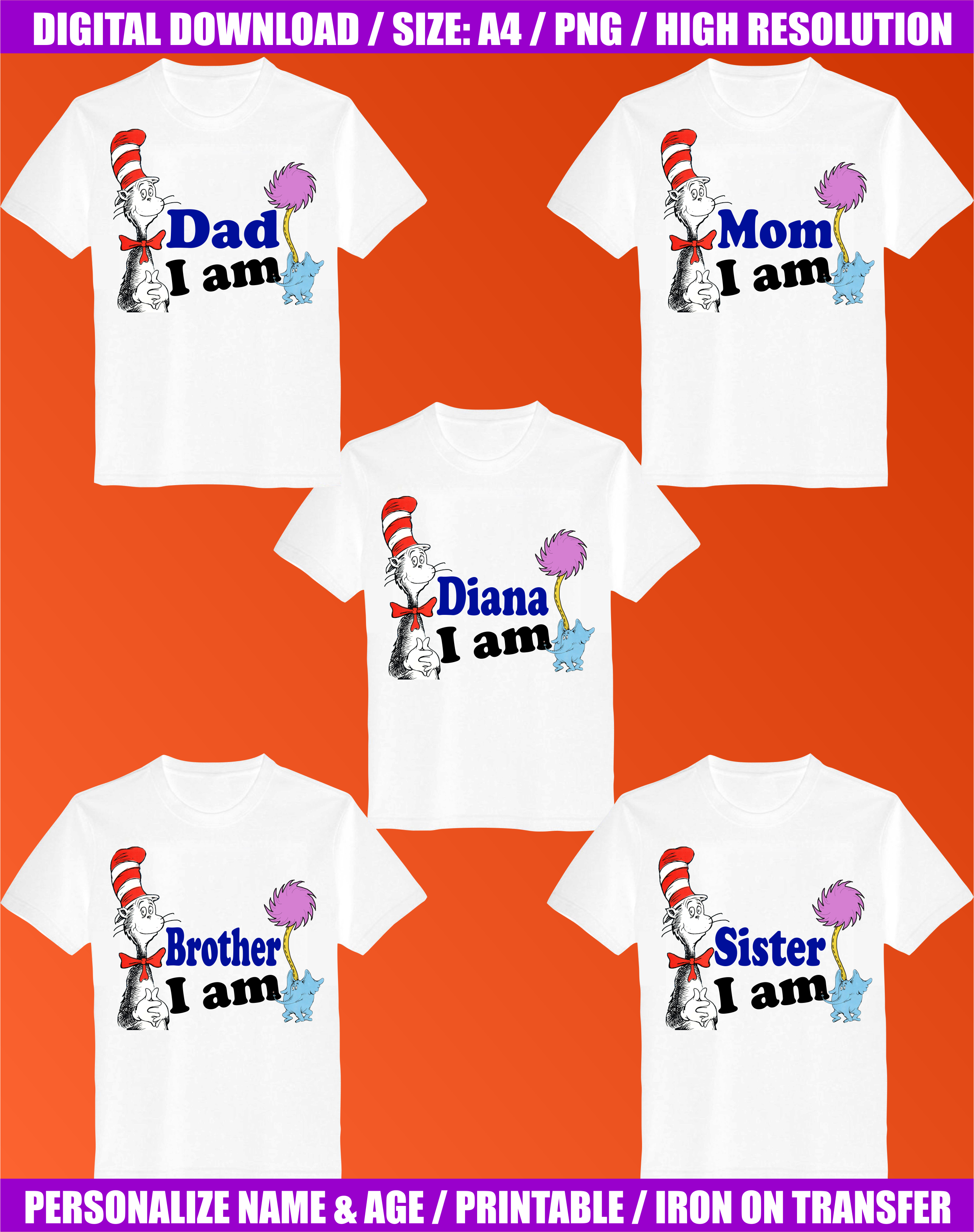 Cat in the hat Family iron on transfer, Cat in the hat iron on transfer, birthday boy, birthday girl