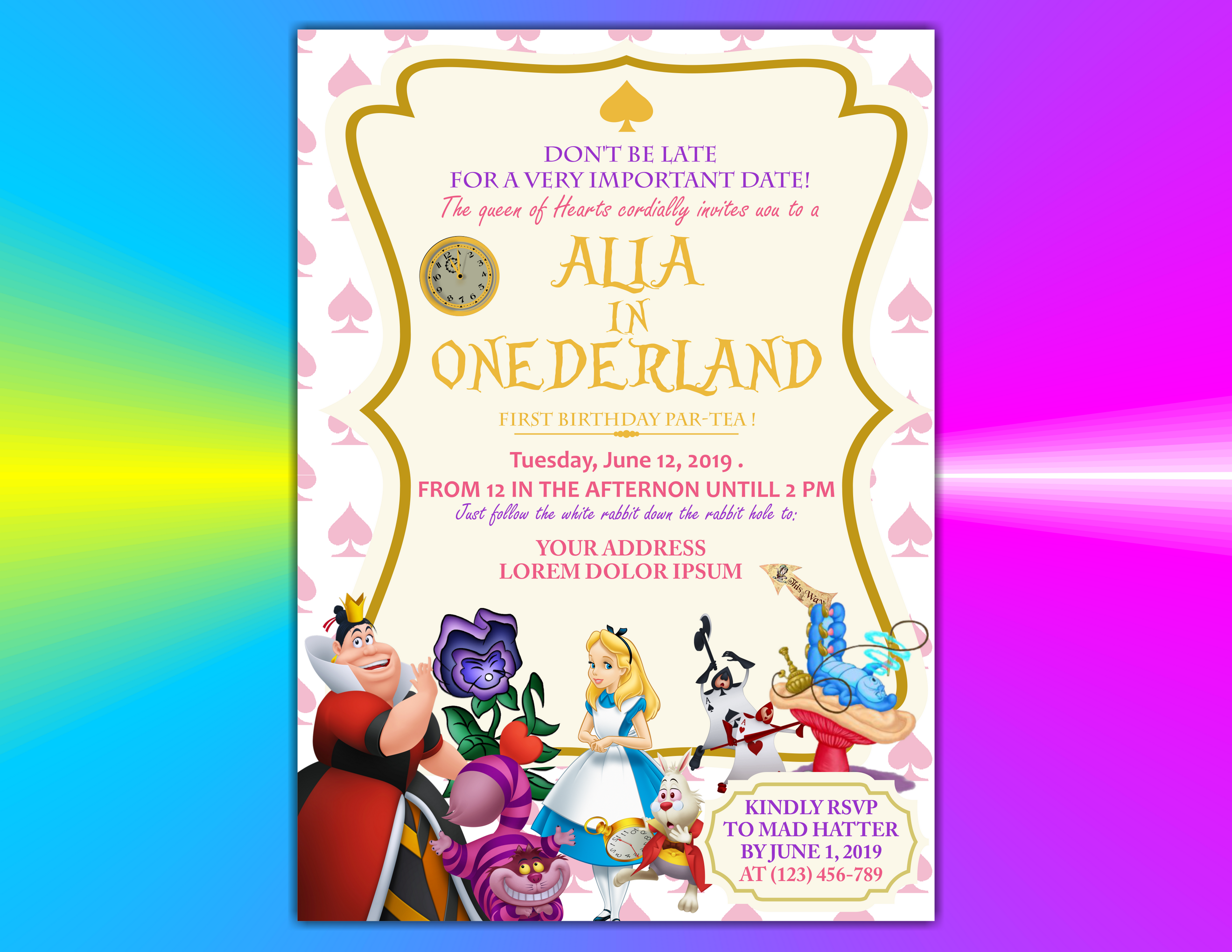 Alice In Wonderland (onederland) Girl's Birthday Party Invitation - Party Birthday, Any Age Girl Birthday Invite, Mad Tea Party Invite