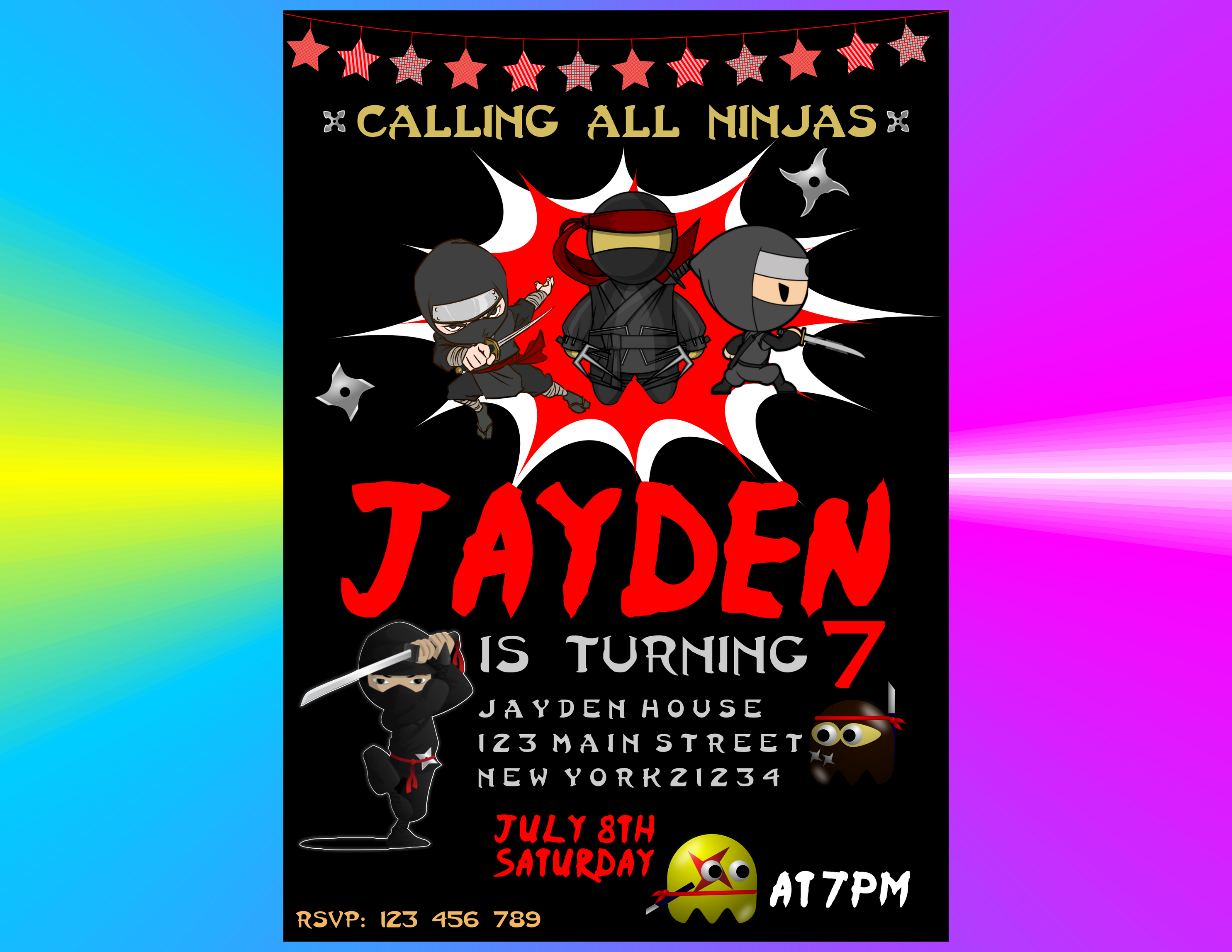 Ninja Birthday Invitation, Ninja Party Printable, Ninja Party Invite, Ninja Birthday Party Supplies, Warrior Birthday Invitation, DIGITAL