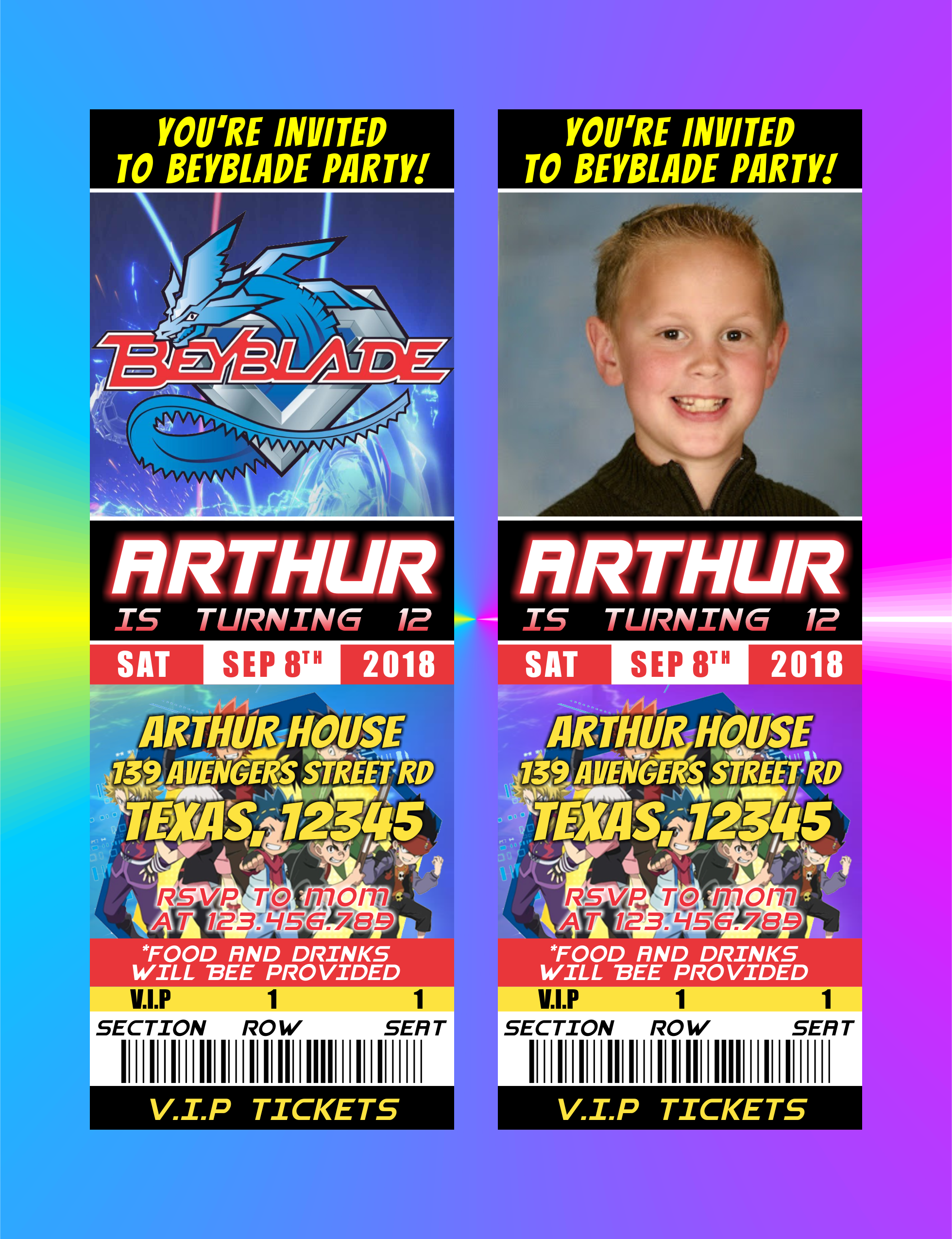 Beyblade Invitation - Beyblade Birthday Party Invite With Photo - Beyblade Party Card