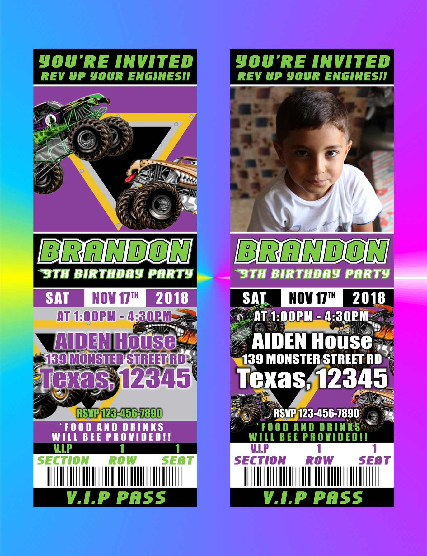 Personalize Monster Truck invitation, Monster Trucks Birthday Party Invite