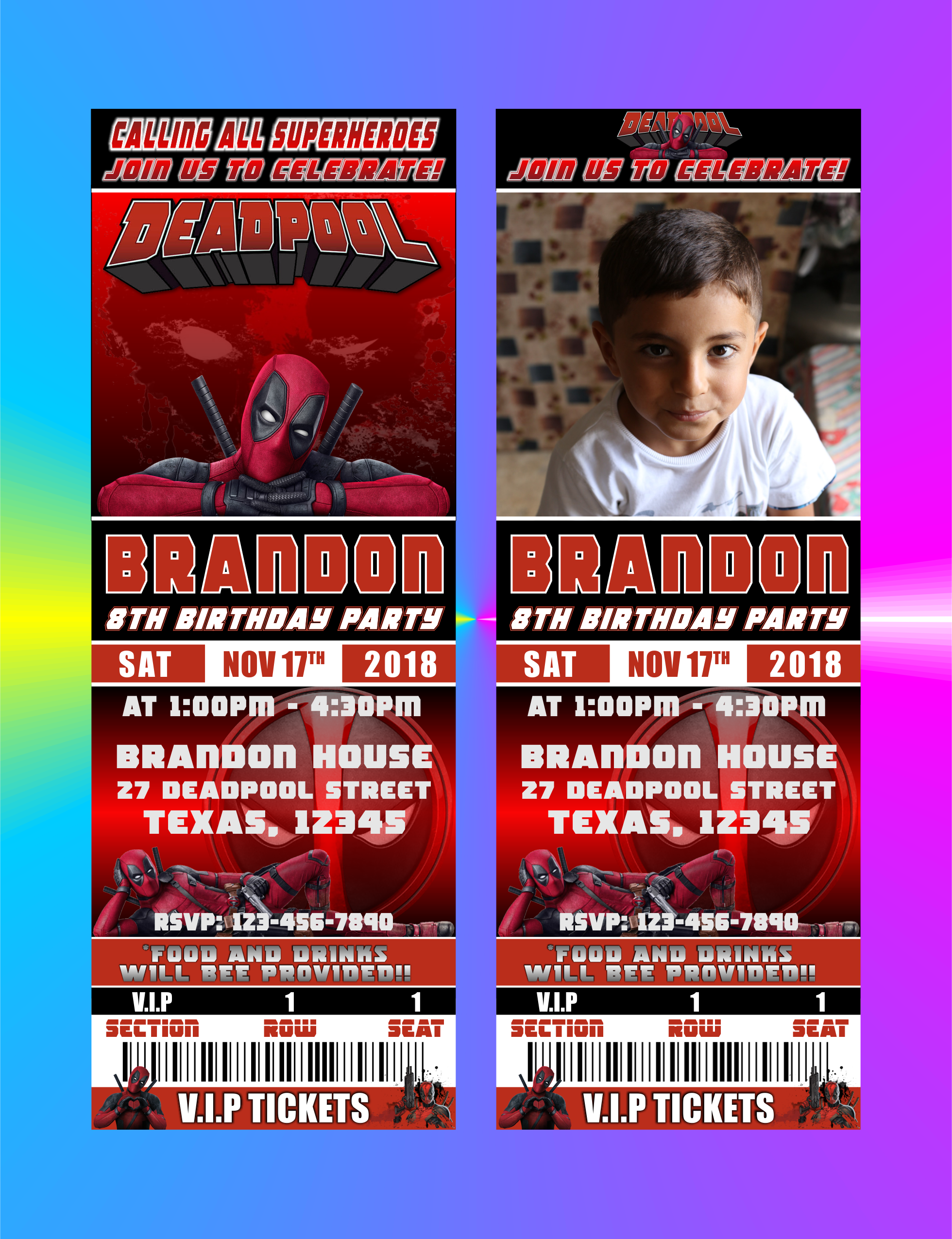 Deadpool Invitation, custom printable Deadpool Birthday invitation, personalized printables invitations for kids Superhero birthday party