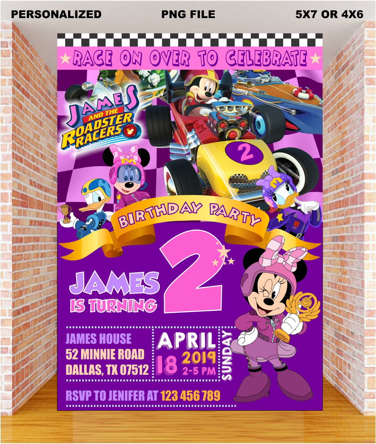 Mickey And The Roadster Racers invitation, Mickey And The Roadster Racers birthday, Mickey And The Roadster Racers party, birthday invitation