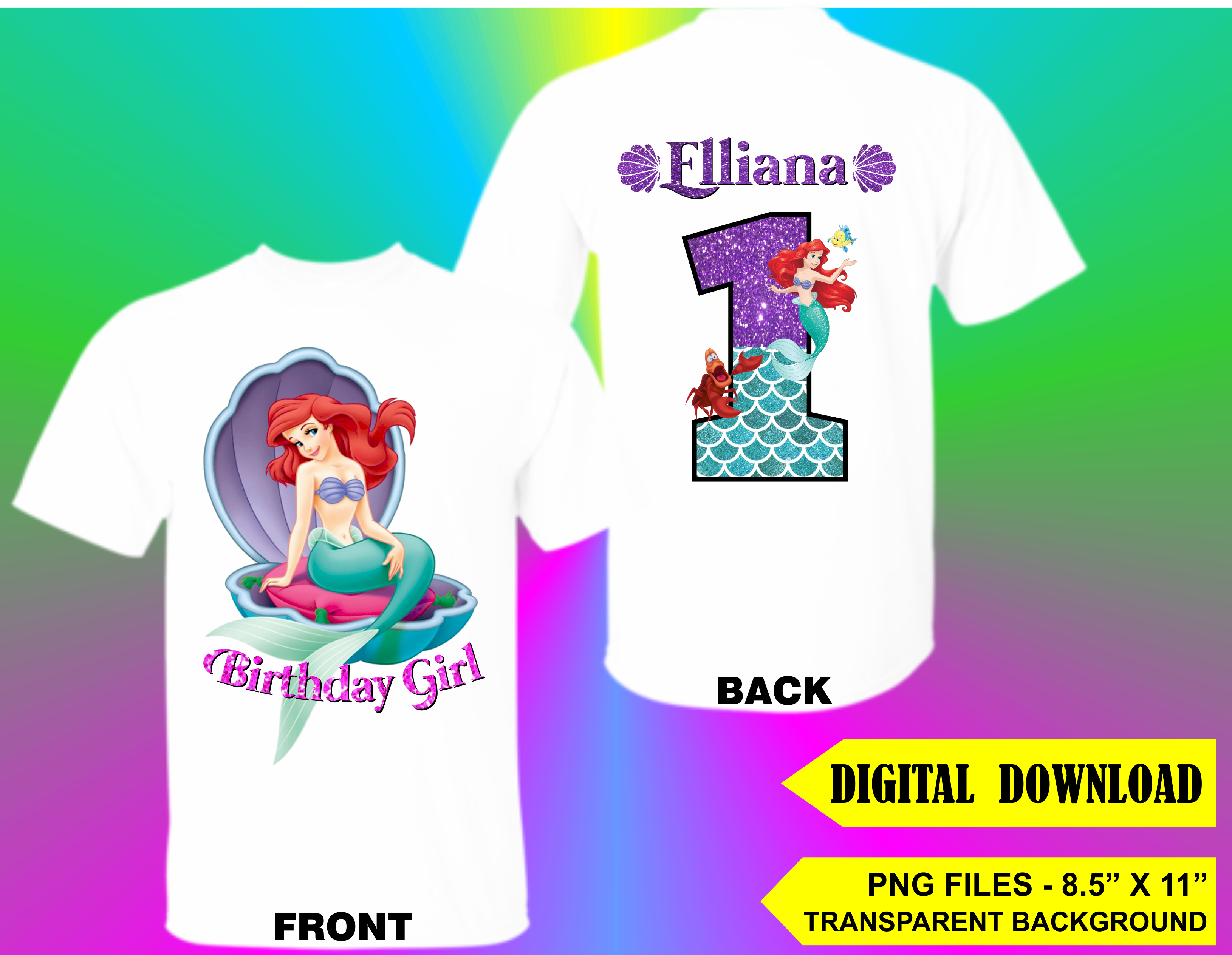 Disney Little Mermaid Iron On Transfer Disney Princess Shirt Birthday Girl Digital Download Personalized Ariel Little Mermaid party shirt