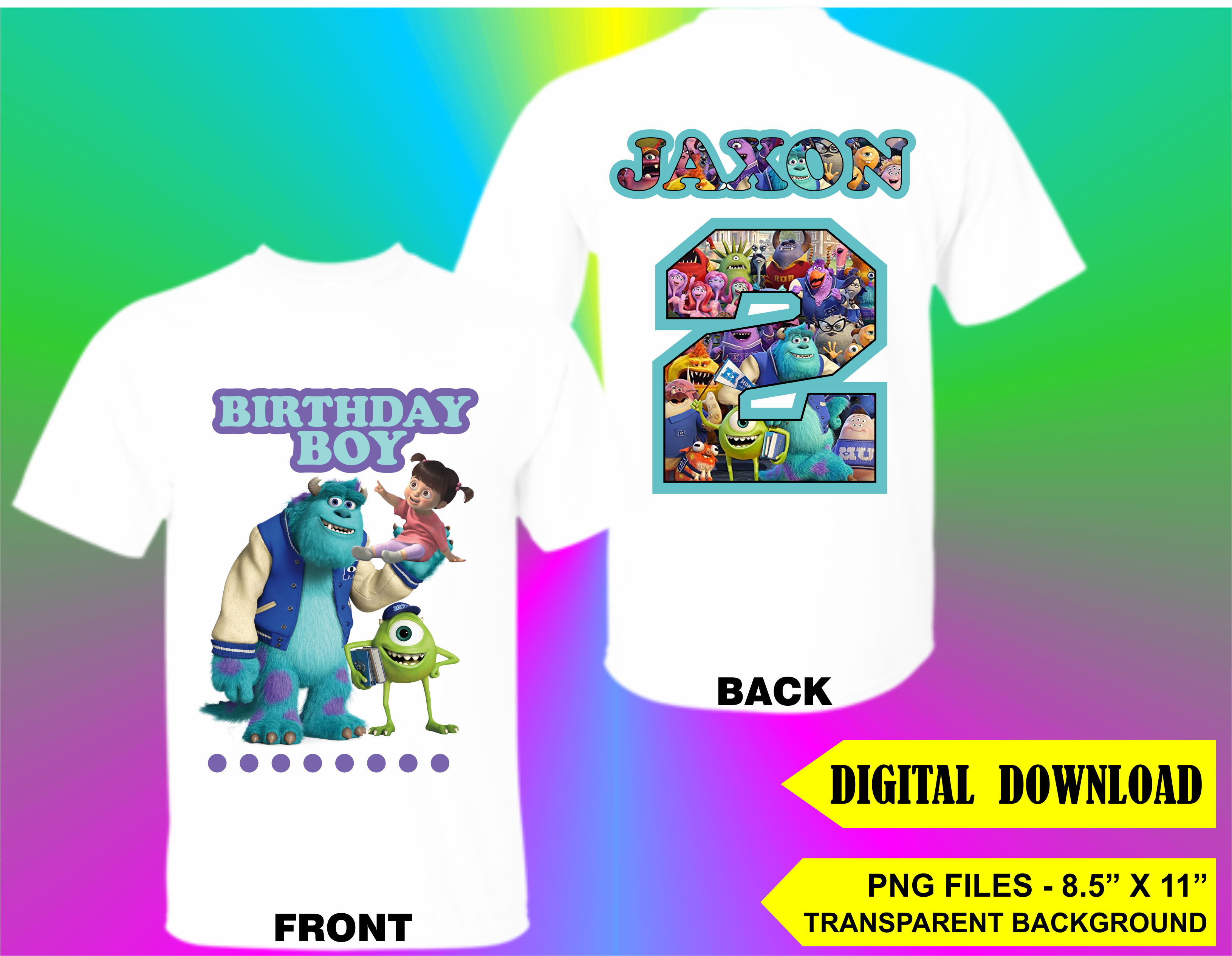Monsters Inc Shirt Iron On Transfer, Monsters Inc Birthday Shirt Iron On Transfer, Monsters Inc, Digital Files, Front Back Design