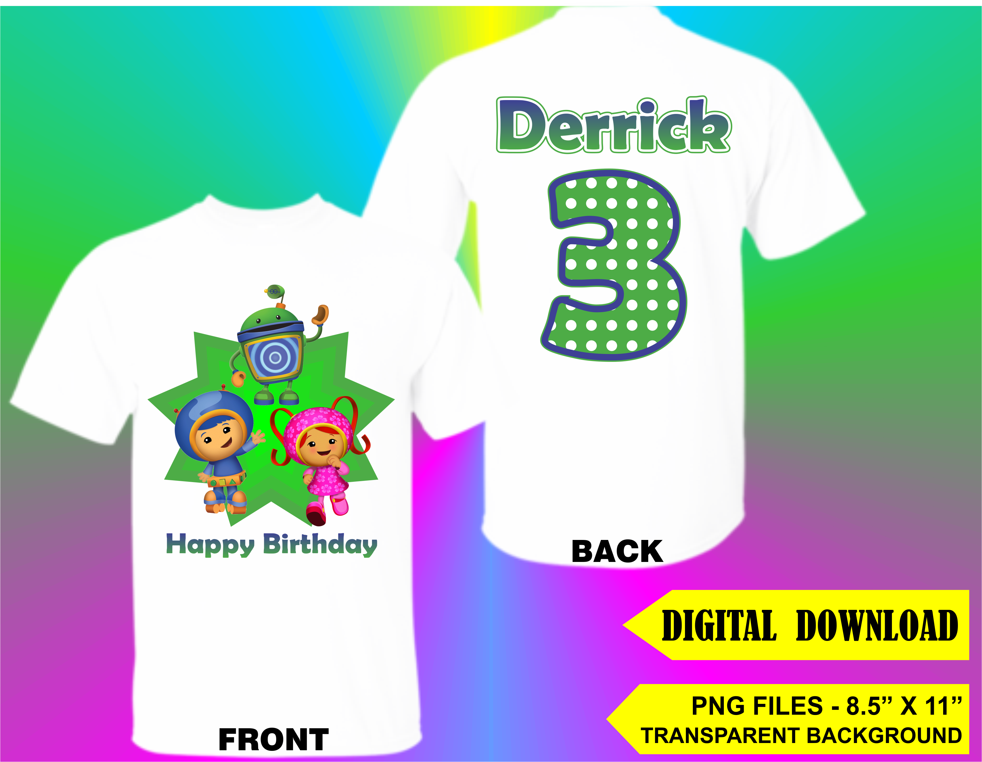Team Umizoomi Iron On Transfer, Team Umizoomi Birthday Shirt Iron On Transfer, Team Umizoomi, Digital Files, Front Back Design