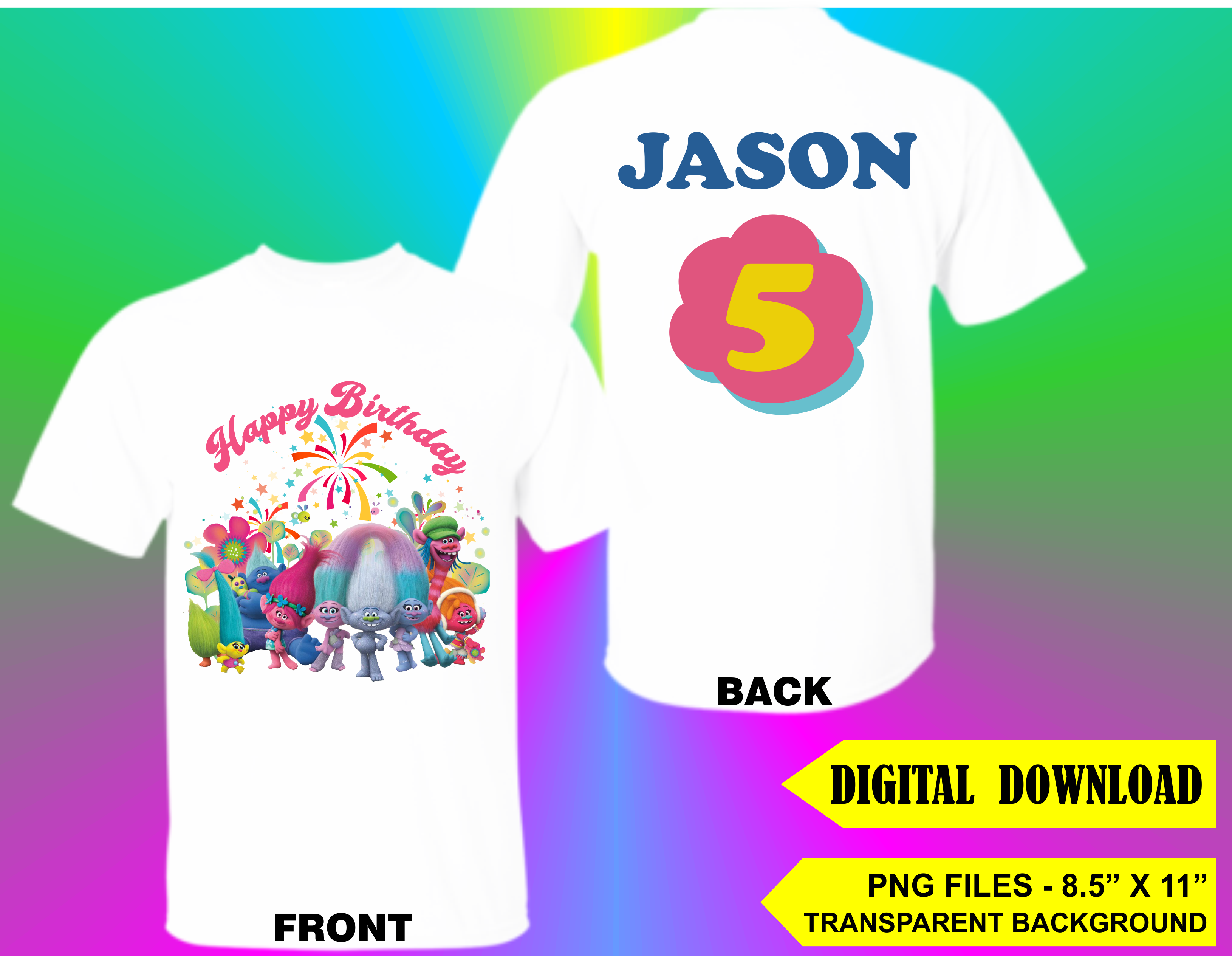 Trolls Birthday Iron On Transfer, Personalized DIY Family Shirts, Birthday Girl Party Printables - TROLLS1