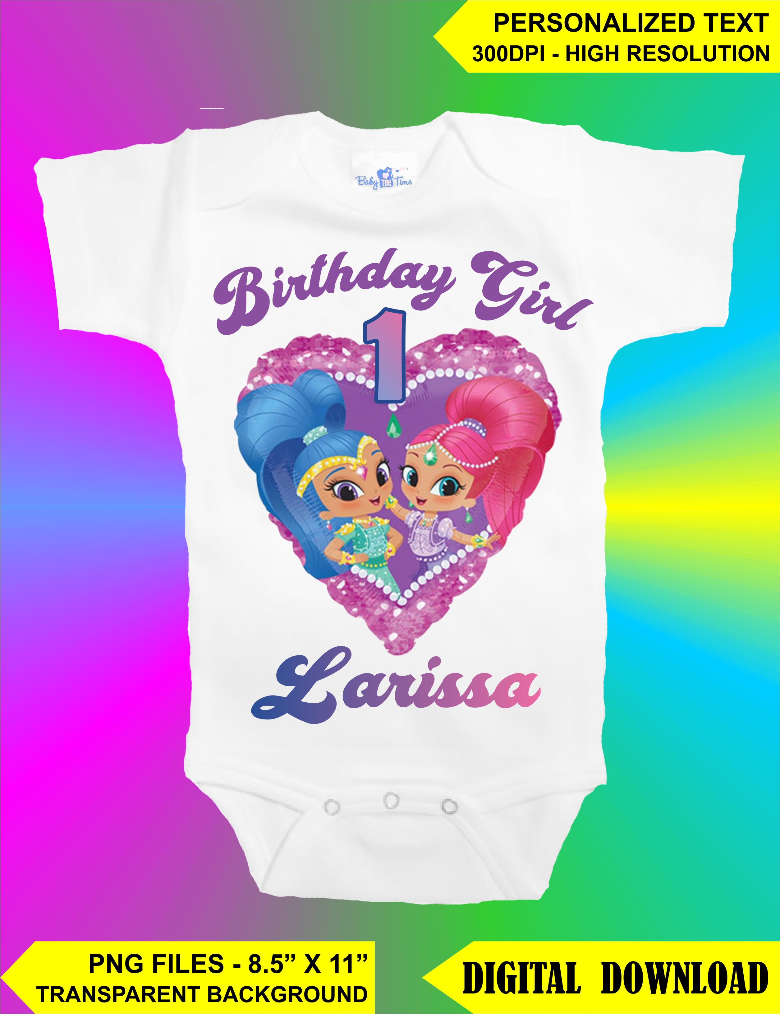 Shimmer and Shine Iron On Transfer baby one piece, Shimmer and Shine birthday, baby one piece iron on transfer