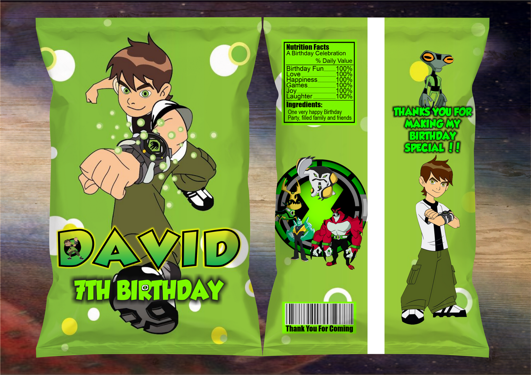 Ben 10 Chips Bag. Ben 10 Party Favors. Ben 10 Snack Bag. Boy Chips Bag. Birthday boy Favors