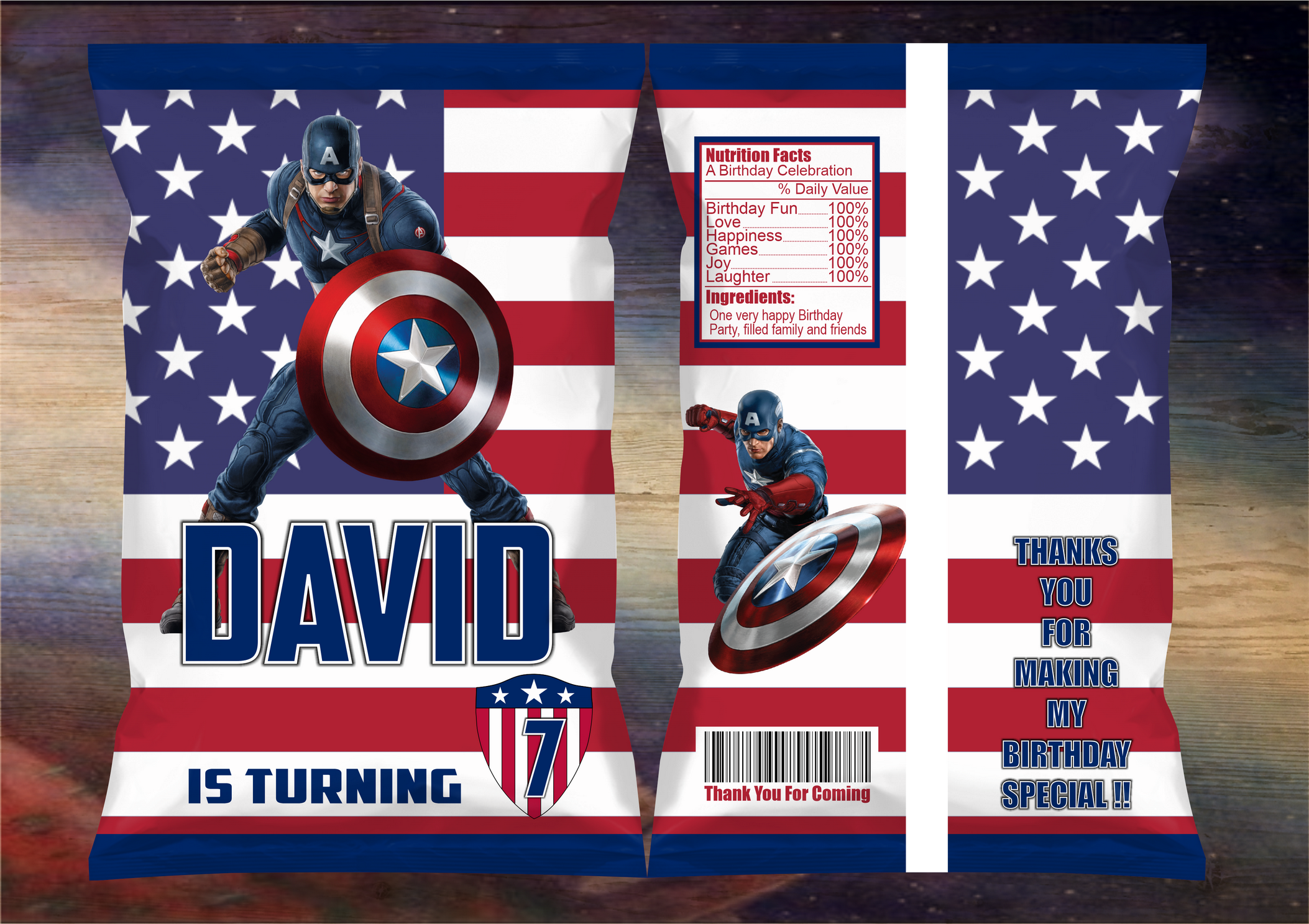 Captain America Chips Bag, Captain America Party Favors, Captain America Snack Bag, Boy Chips Bag, Birthday boy Favors