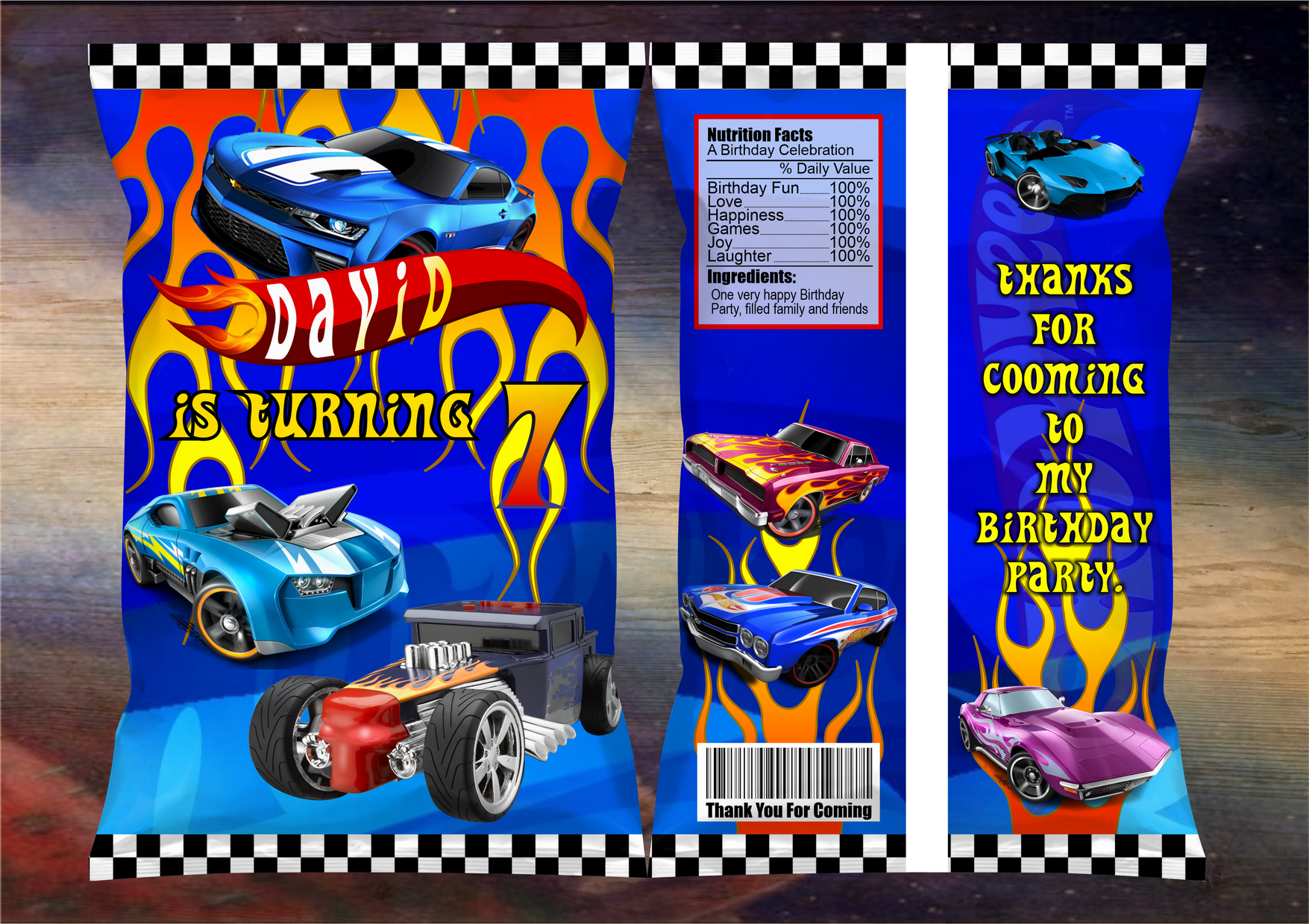 Hot Wheels Chips Bag, Hot Wheels Party Favors, Hot Wheels Snack Bag, Boy Chips Bag, Birthday boy Favors
