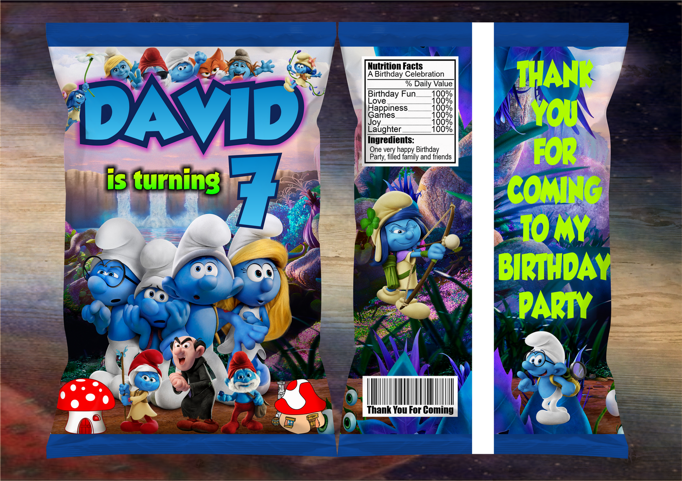 Smurf Chips Bag, Smurf Favors, Smurf Snack Bag, Boy Chips Bag, Birthday boy Favors