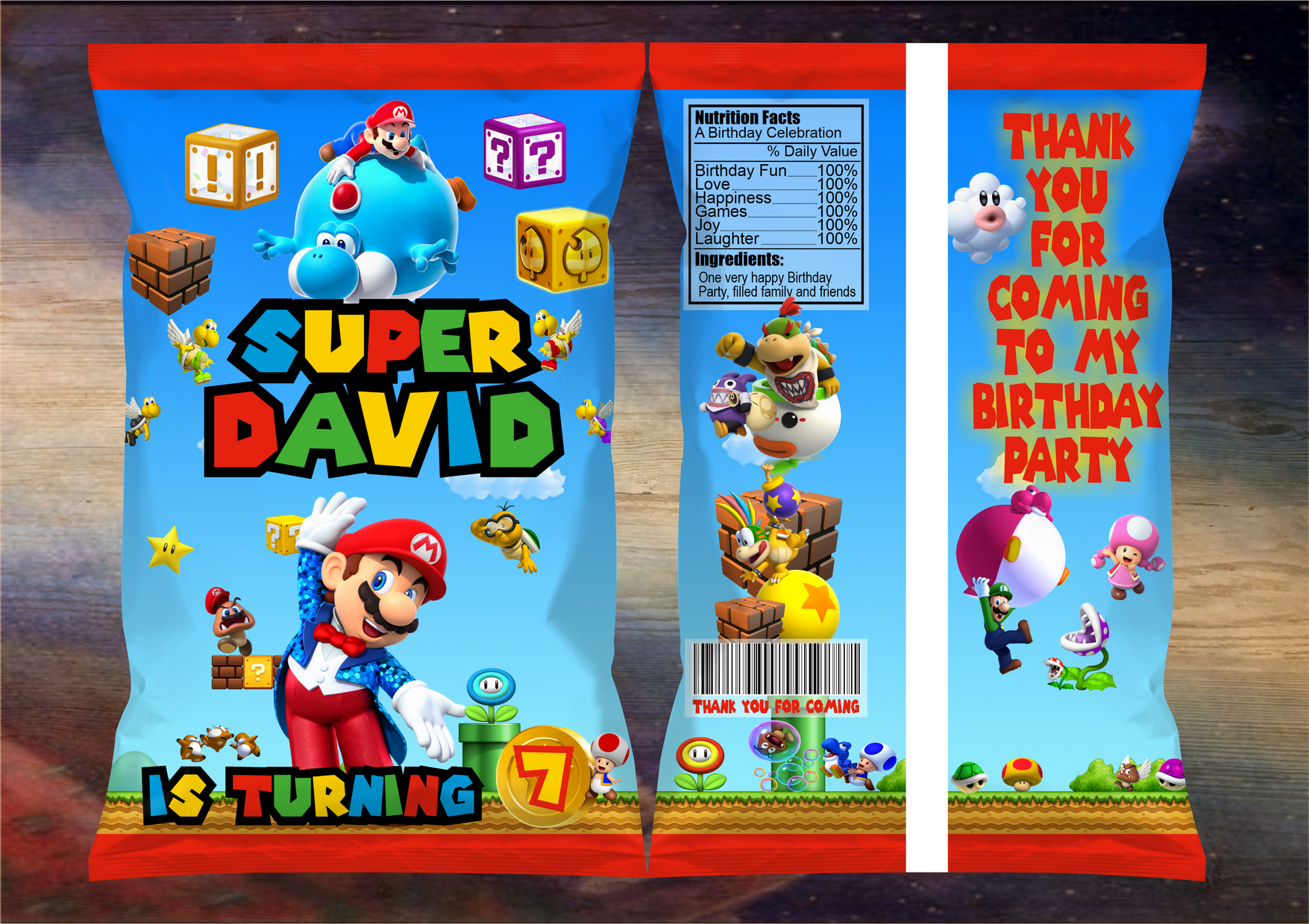 Super Mario Chips Bag, Super Mario Favors, Super Mario Snack Bag, Boy Chips Bag, Birthday boy Favors